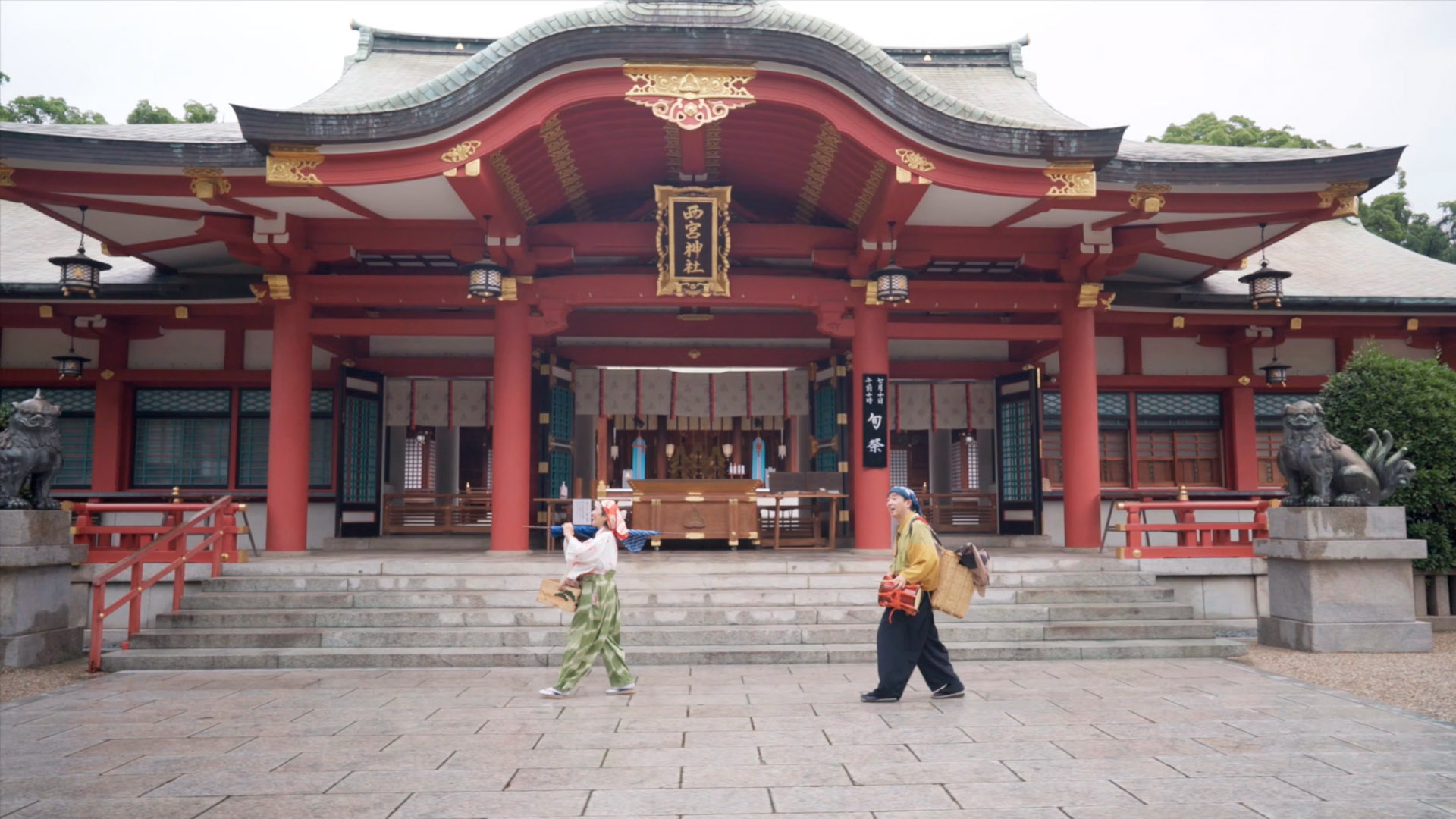 白鹿記念酒造博物館、西宮神社境内にある百太夫神社など、全国各地のえびす様にまつわる地域でロケ撮影を敢行。